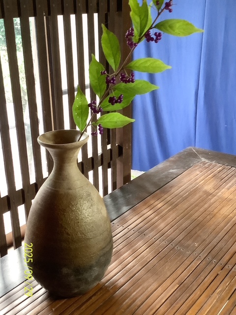 陽が長くなってきたので陶房周りにはいろんな秋草が出ています。紫式部の実はあっという間に鳥たちの食べ物になっています。慌てて写真に収めました。
